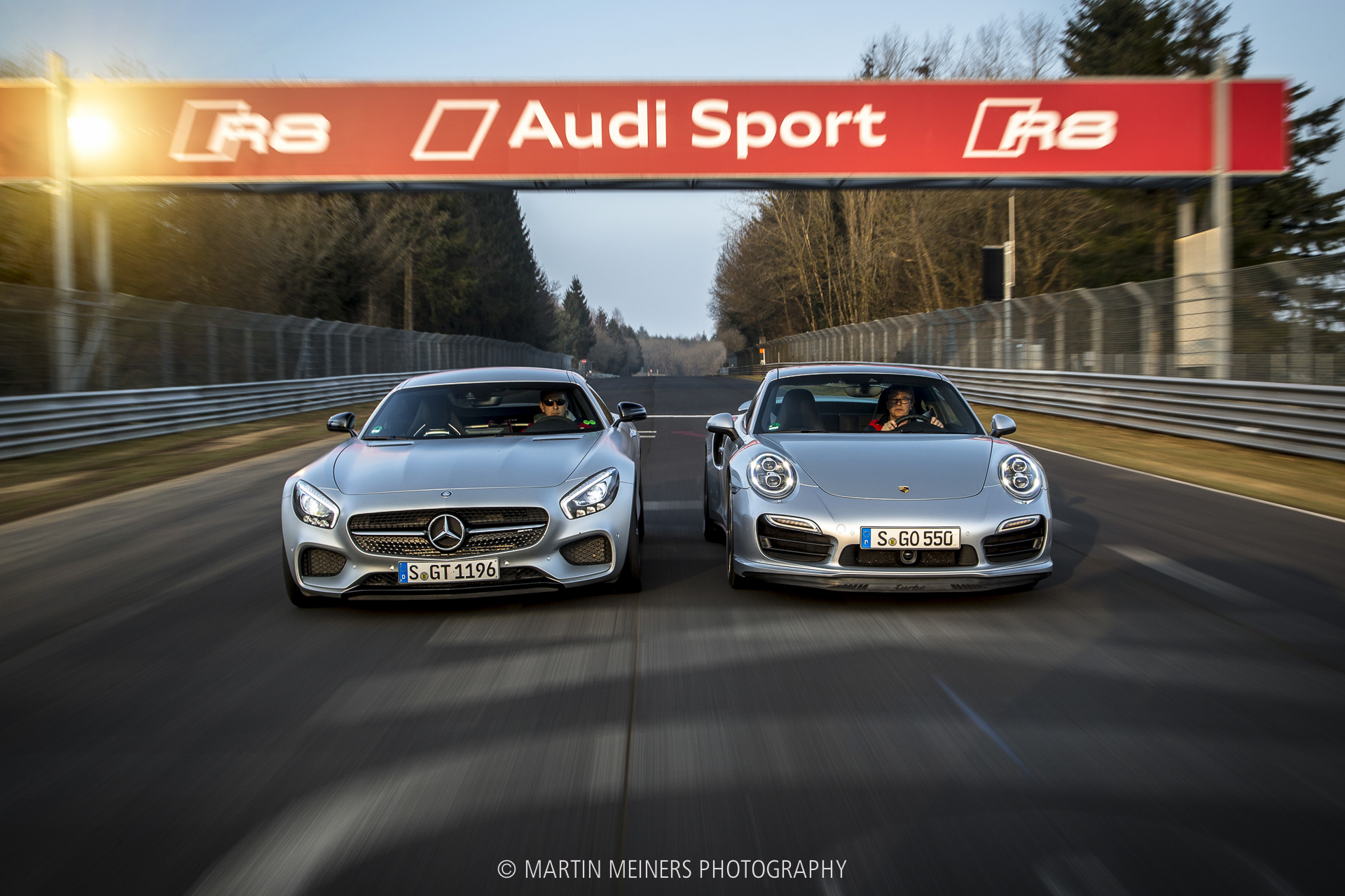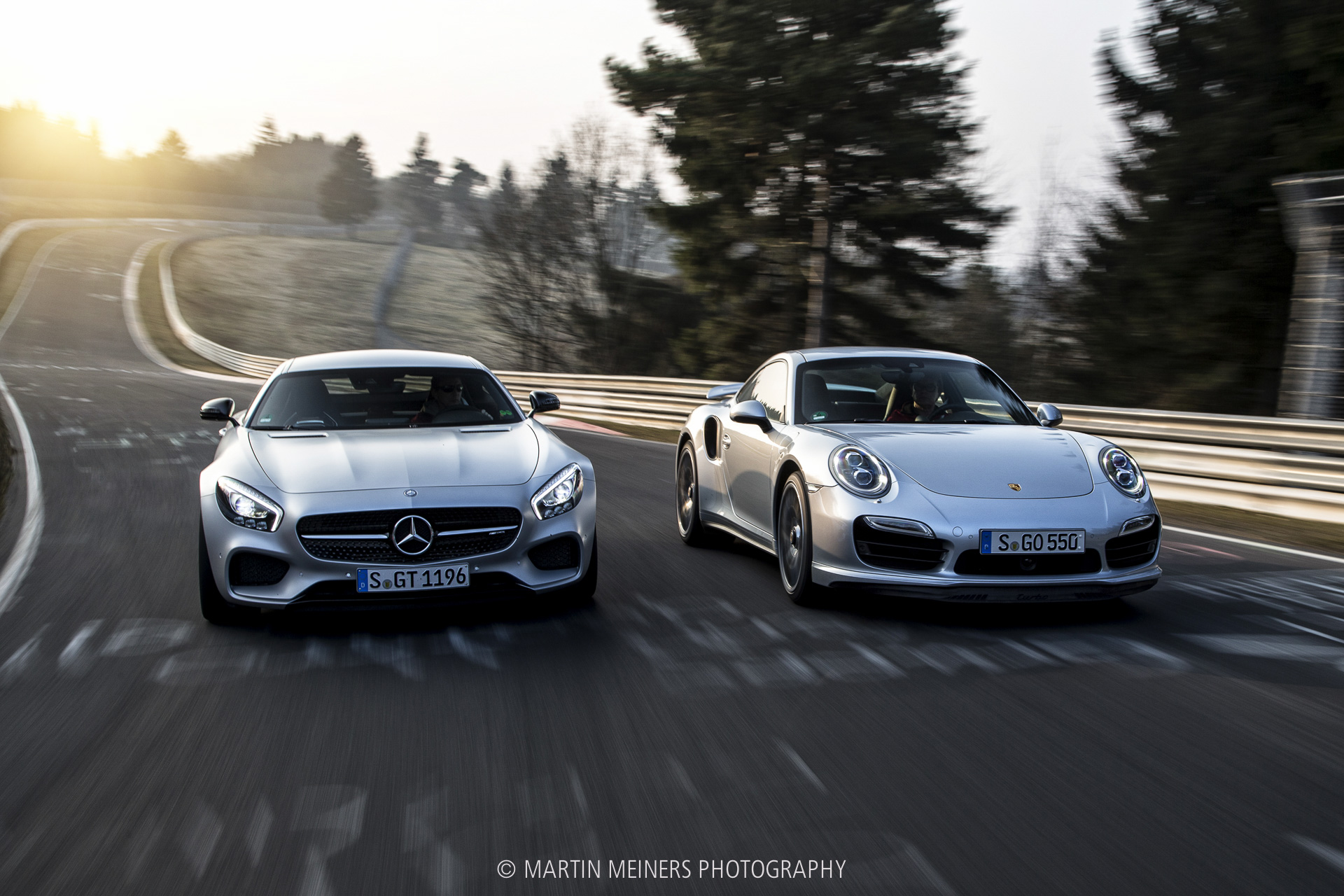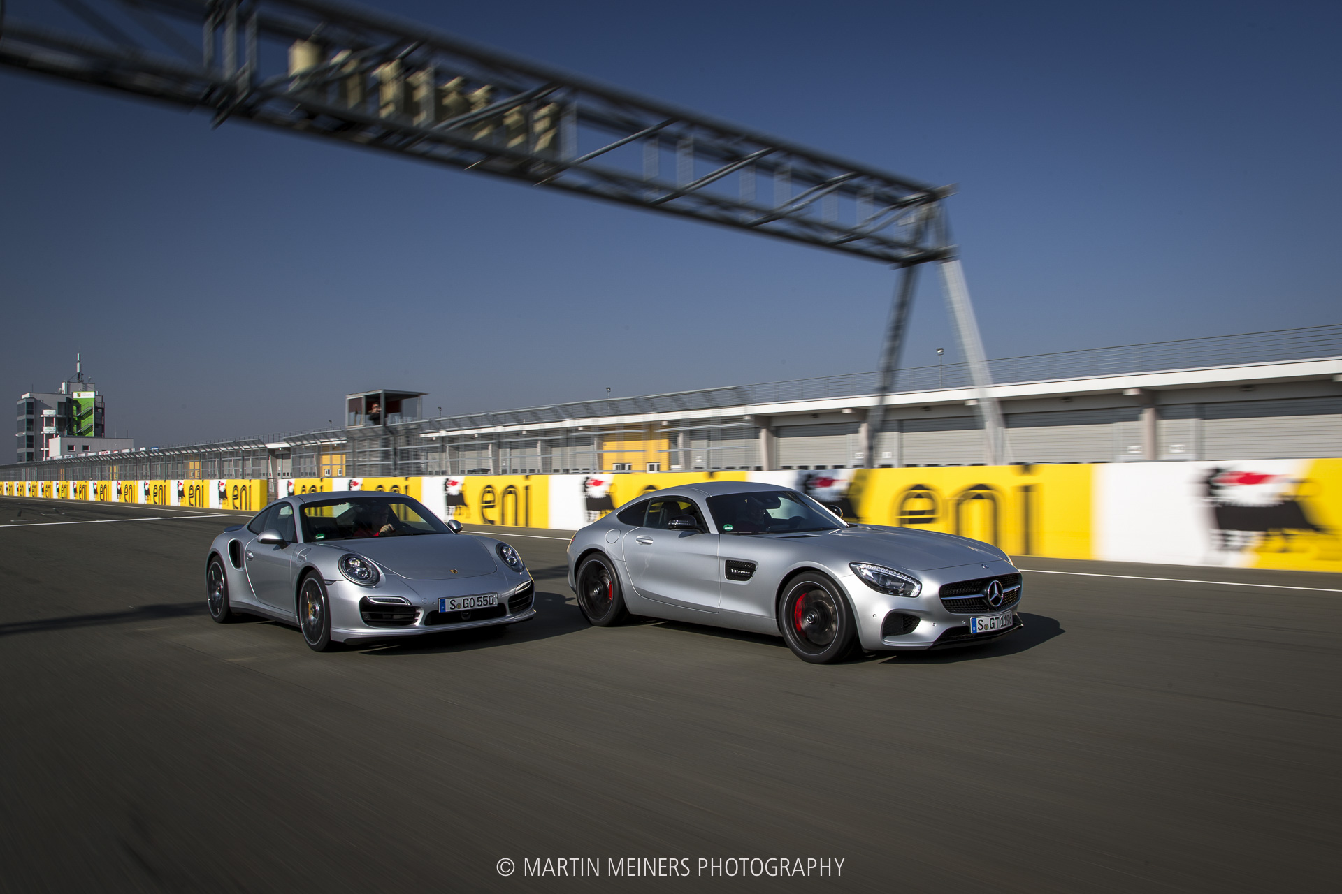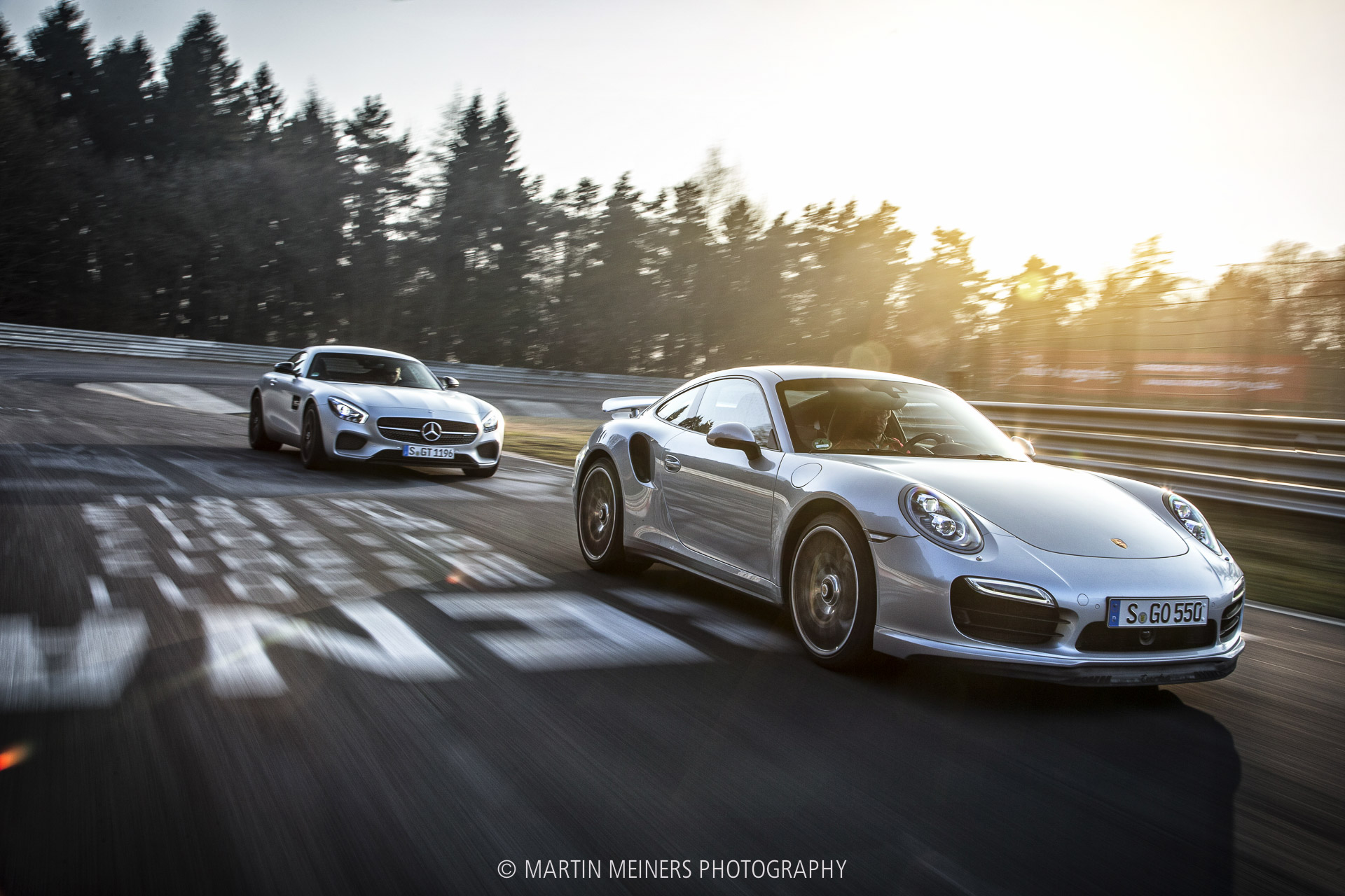 Vergleichstest Mercedes AMG GTs vs. Porsche Turbo auf der Landstraße, dem Sachsenring und auf der Nordschleife.